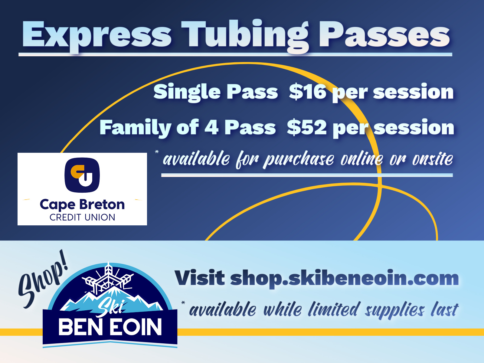 Brought to you by the Cape Breton Credit Union, our Family Tube Park opens in March & offers a mountain of fun for everyone!